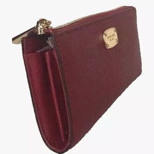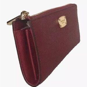 EUC Michael Kors Jet Set Large Three-Quarter Zip Wallet Leather Cherry