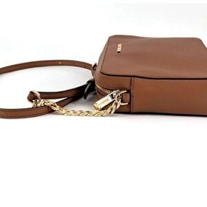 Michael Kors Jet Set Large Brown Saffiano Leather Top Zip Crossbody Bag Purse