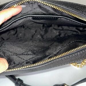• Exterior details: back slip pocket, front slip and zip pockets, removable strap