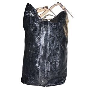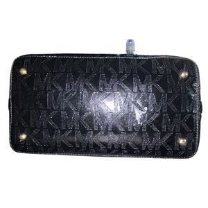 Michael Kors Jet Set Leather Mirror Metallic Signature Black Tote Large