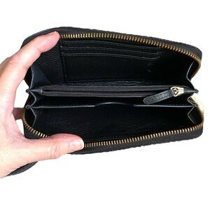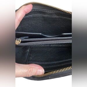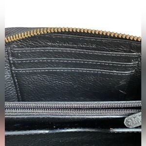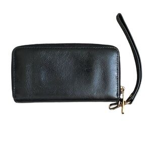 Really nice black leather wristlet by Michael Kors! Nice gold hardware, pebble leather, credit card slot and lots of slide in pockets. Perfect for on the go!