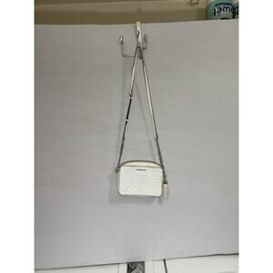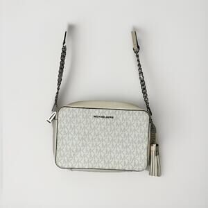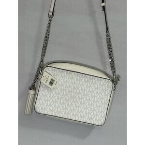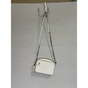 Michael Kors Jet Set MD Camera Crossbody Bag Bright White Logo Leather Chain