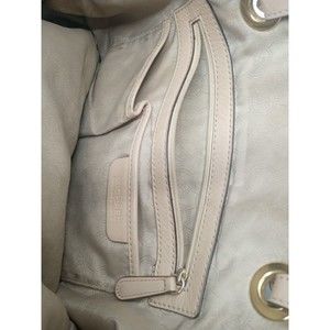 Inside the bag, the lining is beige and there is ample space for all your essentials. The bag also comes with an adjustable strap for added convenience. Whether you're running errands or heading out for a night on the town, this Michael Kors tote bag is the perfect accessory to complete any outfit.