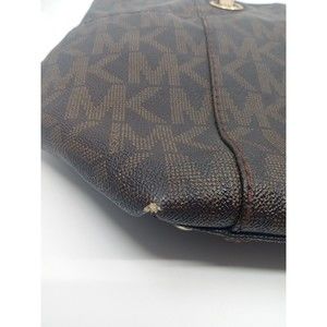 Michael Kors Jet Set MK Logo Brown Leather Tote Bag Purse