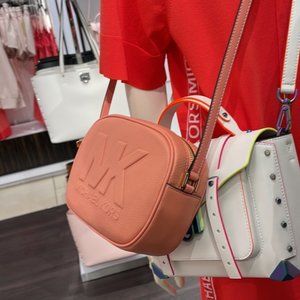 Michael Kors Jet Set Medium Embossed Pebbled Leather Crossbody Bag Sherbert