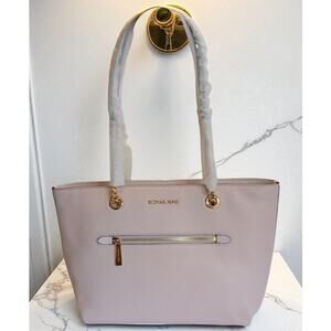 Elevate your style with this chic Michael Kors Jet Set Medium Leather Front Zip Chain Tote in a beautiful powder blush color. This tote is brand new with tags and ready to be your go-to accessory!