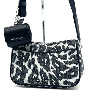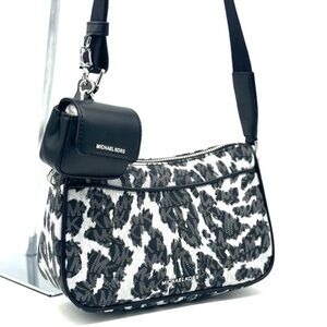 Michael Kors Jet Set Medium Leopard Logo Crossbody Bag W Case for Apple AirPods