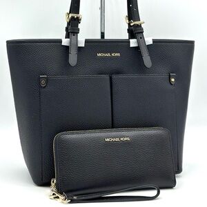 Michael Kors Jet Set Medium Pocket Tote Bag & Continental Wallet Wristlet