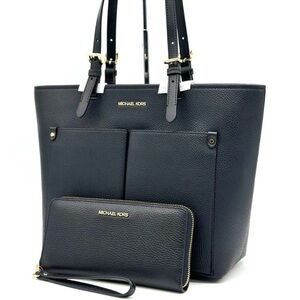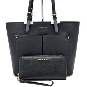 Michael Kors Jet Set Medium Pocket Tote Bag & Continental Wallet Wristlet Black