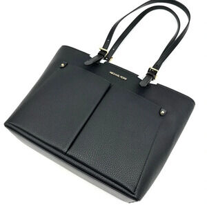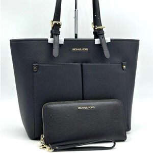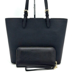 Michael Kors Jet Set Medium Pocket Tote Bag & Continental Wallet Wristlet Black