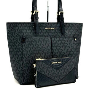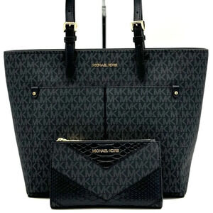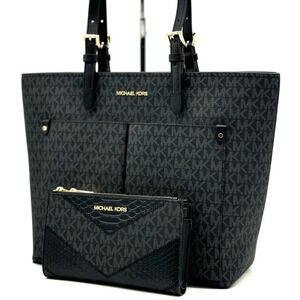 Michael Kors Jet Set Medium Pocket Tote Bag & Double Zip Wallet Black Multi