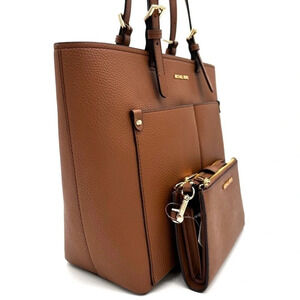 Michael Kors Jet Set Medium Pocket Tote Bag & Large Double Zip Wallet Luggage