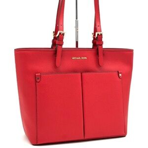 Michael Kors Jet Set Medium Pocket Tote Bag Red/Gold (NWT)