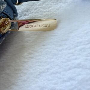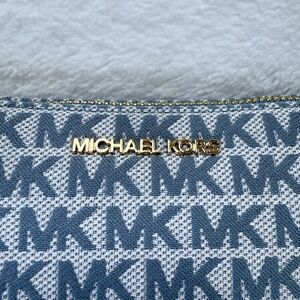Michael Kors Jet Set Medium Pouchette Monogram Chambray Shoulder Bag Blue