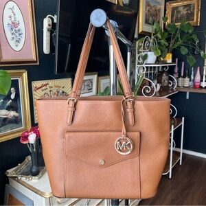 Michael Kors Jet Set Medium Saffiano Leather Pocket Tote Bag
