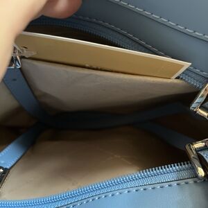 The tote bag has pockets and is made of faux leather and vegan leather, with a silver hardware color. The lining material is fabric and jacquard, while the lining color is south Pacific. The bag is not only functional, but also fashionable, with a solid pattern and Pebbles character. This Michael Kors Jet Set tote bag is perfect for business, casual, formal, party/cocktail, travel, or wedding.