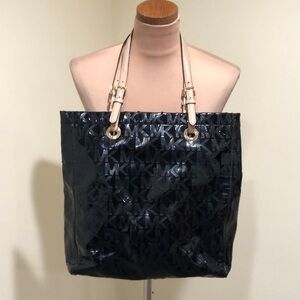 Michael Kors Jet Set Monogram Patent Leather Large Black Tote