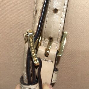 Overall good condition. There is some cracking of the leather at the top and one crack in one side. None of the cracks are noticeable unless inspecting very closely. There is also some darkening on the straps. Large size tote with magnetic snap closure’