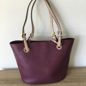 Michael Kors Jet Set Plum Saffiano Leather Tote Bag Top Zip Closure NWOT