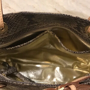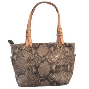 Michael Kors Jet Set Python Embossed Leather Gold Metallic Lined Shoulder Bag