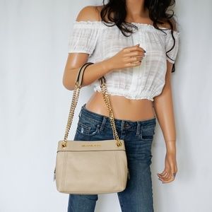 Michael Kors Jet Set SM Chain Leather Tote Bisque