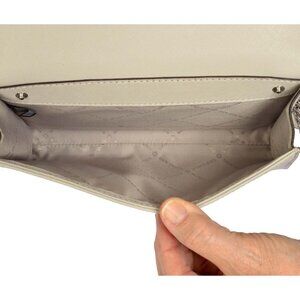 New w/o tags! Gorgeous in a beige/taupe color this is so cool because it's 3 in 1! Has removable wristlet zip pouch inside that snaps to the inside of the crossbody! Use just the wristlet or use just the crossbody without the wristlet or use them all together! This is new! Very nice and clean from a smoke/pet free home. Has silvertone hardware with a compact interior with card slots and a zip pocket offers easy organization for your essentials. Its chain trimmed strap can be detached. 100% leather. Has magnetic snap closure. Has a slip pocket on the back of the bag. Style #35S9STVC3L Bag Measures approx. 8 1/2"long x 5"high x 2"deep. Very nice!