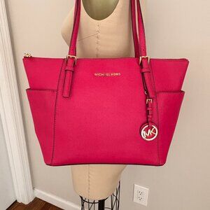 Michael Kors Jet Set Saffiano Leather Large Tote Pink