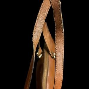 Has some imperfections (scratching on hardware, leather specifically on straps is worn and torn in some places), staining on interior lining (probably could be washed)
