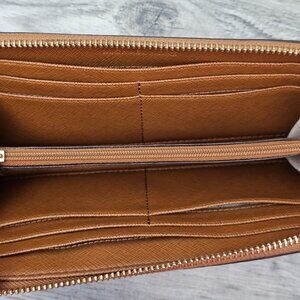 Michael Kors Jet Set Saffiano Leather Zip Around Large Brown Wallet COA Big