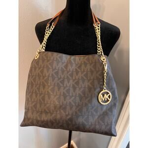 Michael Kors Jet Set Signature LG shoulder tote handbag w/ gold. 13"x10"x6.5"
