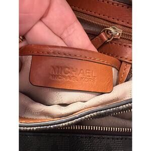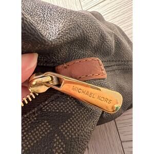 Michael Kors Jet Set Signature LG shoulder tote handbag w/ gold hardware. 13"x10"x6.5" 3 pockets w/ zip & snap closure. Great condition. Please note leather strap circled in pic