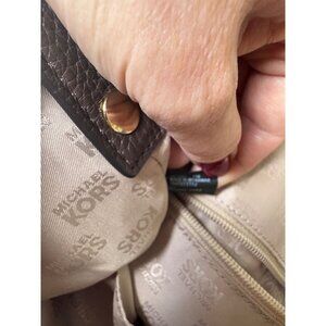 Michael Kors Jet Set Signature Logo Large Brown Tote Bag Gold Hardware Leather