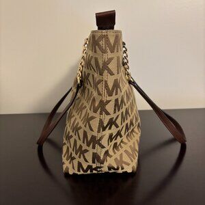 Michael Kors Jet Set Signature Tan Brown Gold Chain Handle Tote Bag