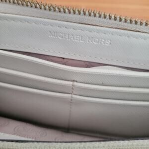 Michael Kors Jet Set Signature Zip Around Bifold Wallet Tan/Cream 8 Card Slots