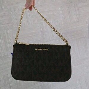 Michael Kors Jet Set Small MK Chain Pouchette Black W/ Gold. Gift Box Ready!