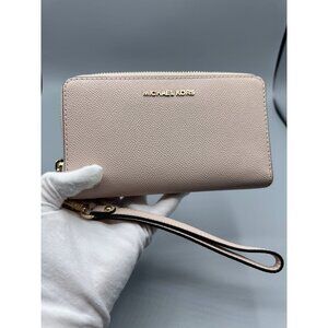 Michael Kors Jet Set Soft Pink Large Flat Multifunction Phone Case Wristlet READ