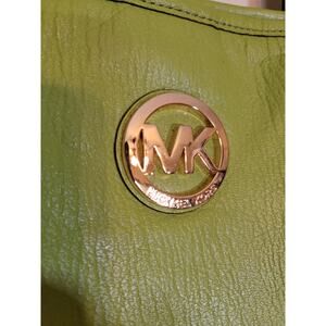 Michael Kors Jet Set Tote Bag Apple Green Leather Snap Closure Shopping Work
