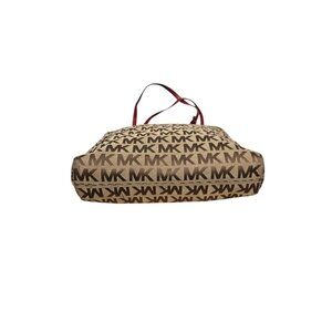 Michael Kors Jet Set Tote Bag MK Signature Jacquard Logo Medium Red Double Strap