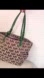 Michael Kors Jet Set Tote – Brown MK Logo with Green Leather Trim