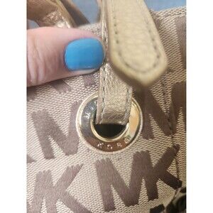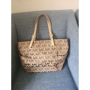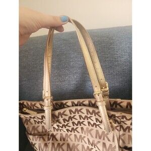 Michael Kors Jet Set Tote Brown Signature Print w/ Gold Leather Straps & Accents