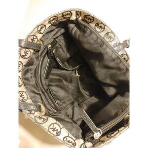 Michael Kors Jet Set Tote Leather and Canvas Black and Tan Logo