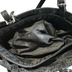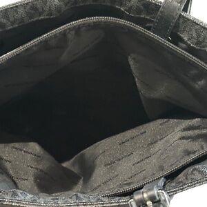 This medium-sized unisex tote is perfect for travel, business, or everyday use. The interior has polyester lining and inner pockets for easy organization. The double handles are adjustable. The tote comes with a keychain and bag charm accessory.