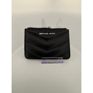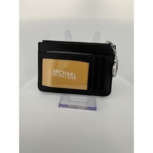 Chic and practical, this Michael Kors Jet Set Travel Card Holder is crafted in smooth leather with a sleek silhouette and silver-tone hardware. Designed for everyday convenience, it features multiple card slots, an ID window, and a zip-top compartment for coins or small essentials. The detachable key ring adds extra functionality for easy on-the-go use. Available in classic black and deep navy blue.