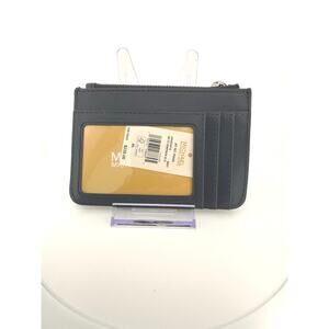 Chic and practical, this Michael Kors Jet Set Travel Card Holder is crafted in smooth leather with a sleek silhouette and silver-tone hardware. Designed for everyday convenience, it features multiple card slots, an ID window, and a zip-top compartment for coins or small essentials. The detachable key ring adds extra functionality for easy on-the-go use. Available in classic black and deep navy blue.