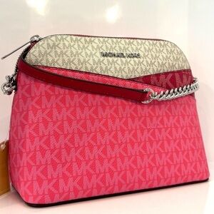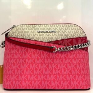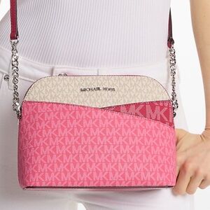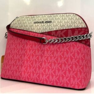 Michael Kors Jet Set Travel Color-Block Signature Logo Crossbody Bag Dark Razz