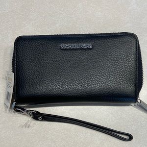 Michael Kors Jet Set Travel Continental Zip Leather Wallet Wristlet, Black Leather with Silver Details, Brand New, Never Used, Original Tags Attached, Smoke Free Home