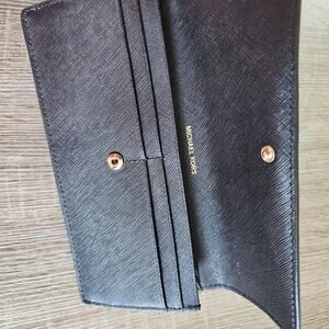 Michael Kors Jet Set Travel Double Top Zip Black Leather Wallet Purse