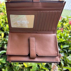 Michael Kors Jet Set Travel Double Zip Leather Wristlet