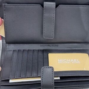 Michael Kors Jet Set Travel Double Zip Wristlet Wallet MK Logo Black Multi