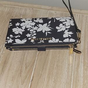 Michael Kors Jet Set Travel Double Zip Wristlet Navy Blue Floral Wallet